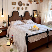 Retro solid wood soft bag master bedroom double bed soft bag storage bed