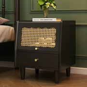 Bedside table Solid wood retro bedroom storage table Rattan small cabinet Small bedside locker