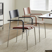 Dining chair household solid wood Internet celebrity chair Bauhaus designer stainless steel armrest soft bag chair