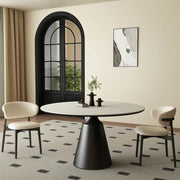 Minimalist light luxury round rock slab dining table modern simple small apartment round rice table and chair turntable household custom