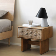 Home bedroom creative solid wood bedside cabinet light luxury high sense rattan new custom