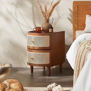 Rattan solid wood cabinet bedside cabinet household retro edge table custom