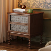 Bedside table Solid wood retro bedroom storage table Rattan small cabinet Small bedside locker