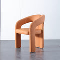 This modern armchair showcases a bold, sculpted silhouette with seamlessly curved arms and a plush orange leather covering. Its minimalist, enveloping design combines artistic form with cozy comfort, making it a striking centerpiece for living rooms, lounges, or contemporary interiors.