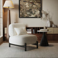 This chic accent chair blends modern minimalism with cloud - like coziness, featuring a teddy - textured upholstery and a sleek black metal base. Its low - profile design and plush cushioning create a serene retreat for living rooms, bedrooms, or reading nooks, balancing contemporary style with indulgent comfort.